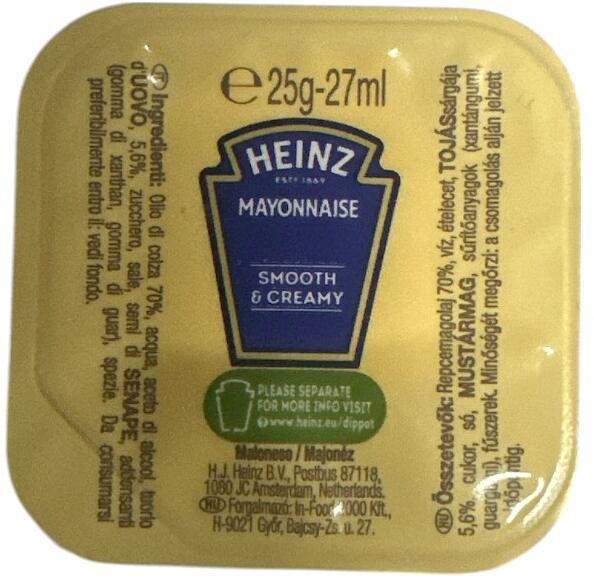 Összetevők: repcemagolaj (~ 68 %), víz, pasztőrözött tojássárgája (~ 5 %), ételecet, cukor, keményítő, só, mustármag, fűszerek, antioxidáns: kalcium-dinátrium-EDTA. Allergének az összetevők listájában vastagon kiemelve.